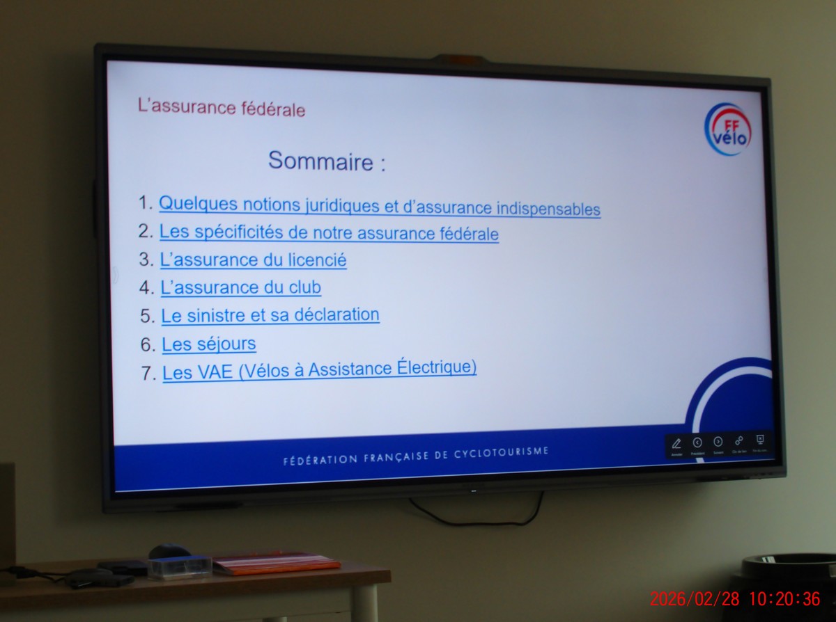 Nous avons eu des précisions sur le contenu de l’assurance fédérale, ainsi que les textes qui régentent le code des assurances et celui du sport.