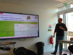 Les assurances étant très complexes, notre expert Nicolas EDUIN, membre du CA de la FéDé et travaillant dans le milieu des assurances, était venu pour nous instruire, un peu comme le ferait un professeur avec ses élèves.